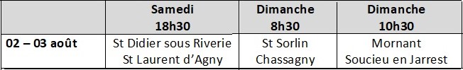 Un temps de fraternité, ouvert à tous, pour louer et partager ce que fait Dieu dans nos vies et la Parole de Dieu, à St Didier sous Riverie Contact : Maguy BESSON COLOMBO (tél : 06 63 70 72 67) |